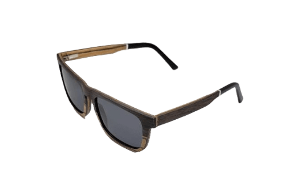 Black Oak Wood and Zebrawood. Gray lens. Strong frames and arms.