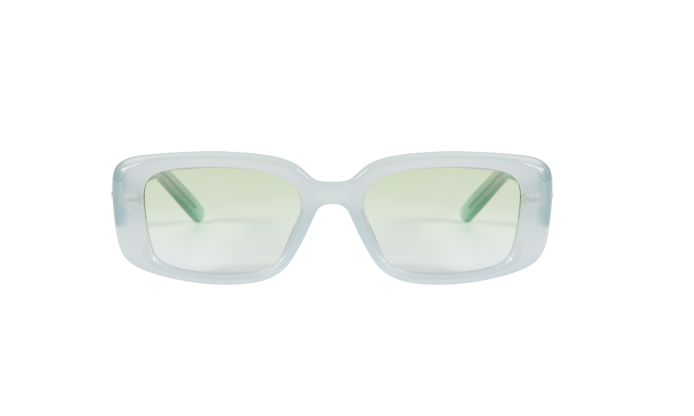 Light green acetate frames with light green lenses. Silver starlets on the arms. Lightweight and comfortable. Classy. For everyday use.