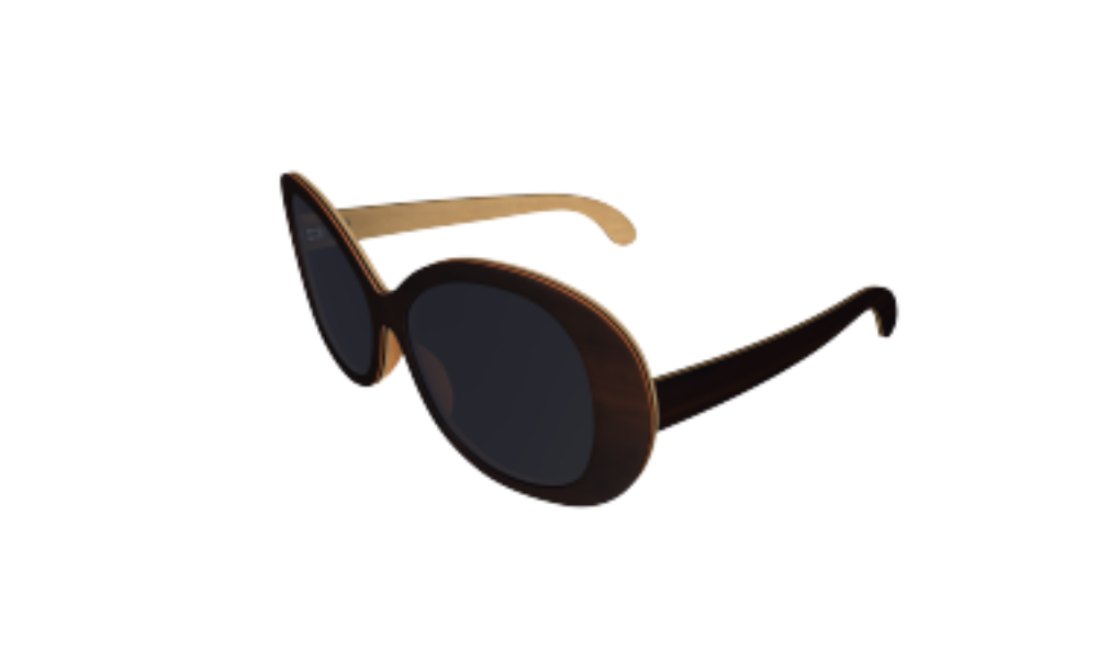 Cat eye Bamboo. Very strong frames and arms.  Brownish lens.  Good for the beach or around town.