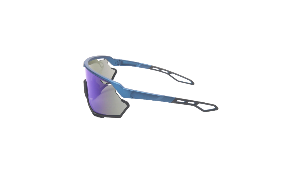 Sunglasses for Cycling. Yellow and black frames and multicolored lenses. State-of-the-art sunglasses.